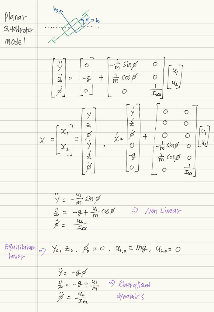 hovering 상태 일때라고 가정하고 lineralization을 하게 되면 아래와 같다.