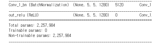 위의 코드를 지나 freezing 을 진행 한 후에 보면 trainable params 가 0 이 되는걸 알수 있다.