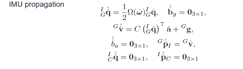 Camera state 에서 orientation 과 position 값은 IMU state 값을 사용한다.
