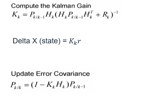 Kalman gain 을 계산하여 state 의 오차를 구해서 State 에 더해준다 (IMU + Camera)
