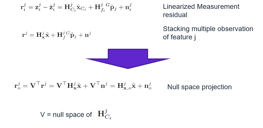 H_f 의 null space를 통해 residual 을 projection 한다. 이를통해 P 의 uncertainty가 영향을 미치지 않도록 한다