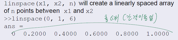 - Linspace (범위 내에서 간격이 동일한 여러 개 만들기)