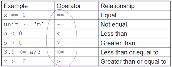 - Relational operators