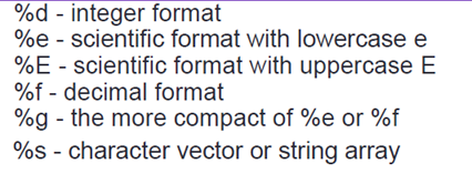 - Fprintf(‘format’, x, y, …)