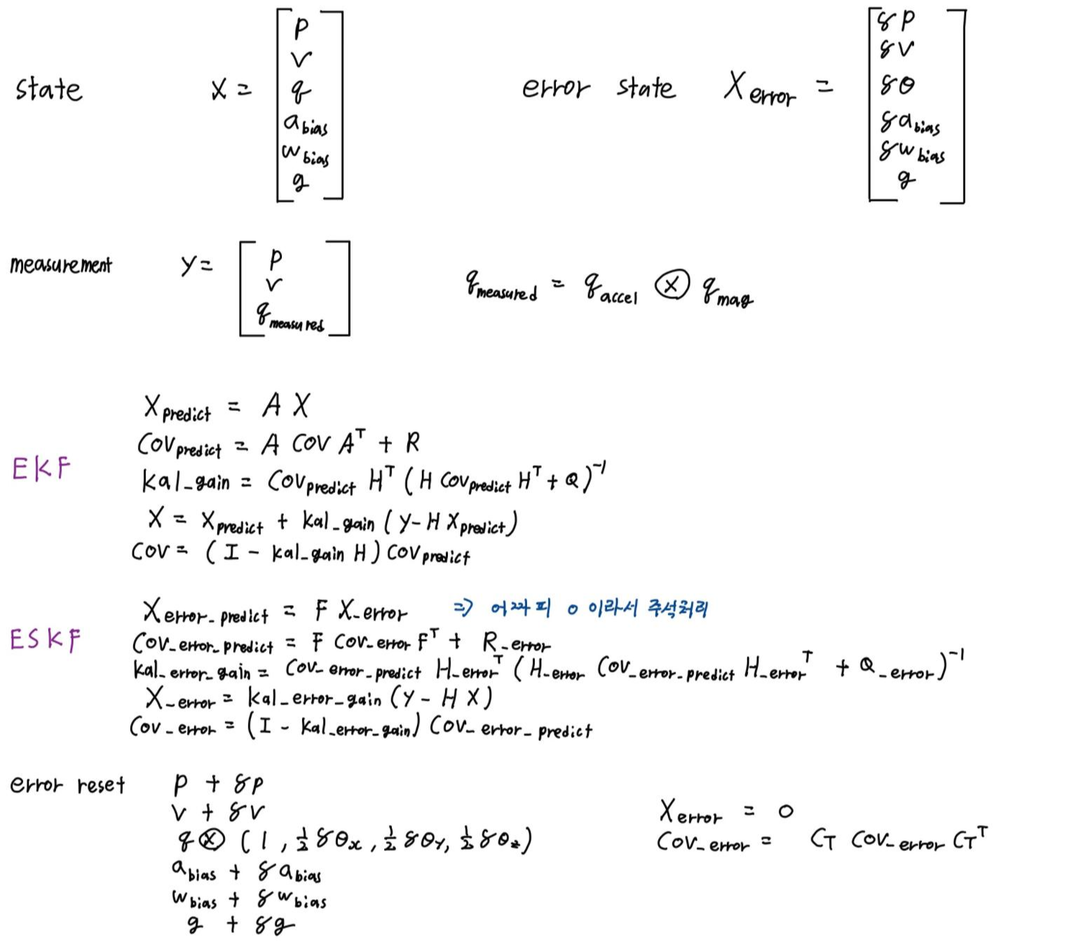 또한 Error state Kalman Filter 를 통해 Bias 를 update 할 수 있다.