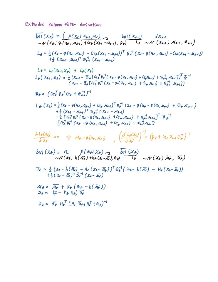 아래는 Kalman Filter 와 Extended Kalman Filter 의 증명 과정이다.