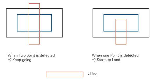 라인이 연속된다면 outerline 과 라인이 2가지 지점에서 만나게 딥니다. 만약 한곳만 만나게 된다면 라인이 끝난지점 즉 landing 을 해야하는 지점 입니다.