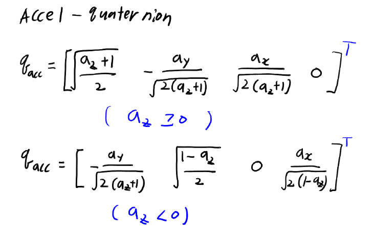 가속도 센서를 이용하여 자세를 추정하는 식은 아래와 같다