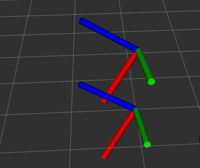 위의 3축이 모션 캡처로 구한 자세 쿼터니언이고, 아래 3축이 칼만 필터로 구한 자세 쿼터니언 이다.